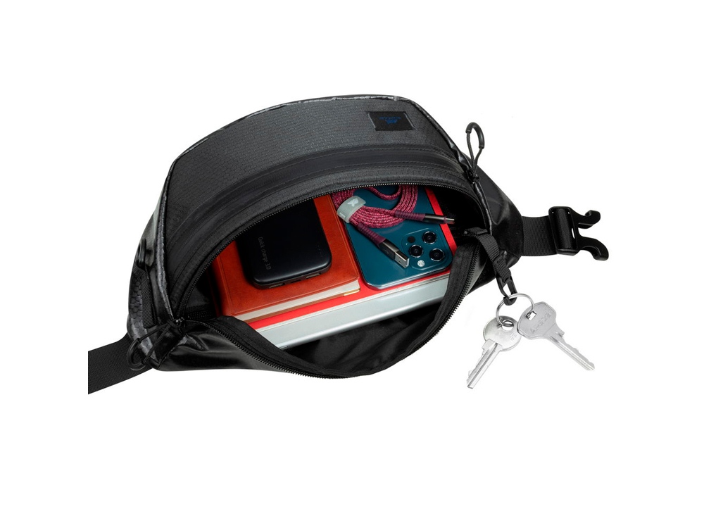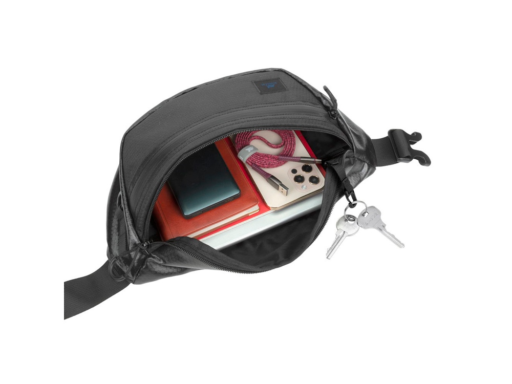 Сумка-слинг для мобильных устройств. Выполнена из высококачественной водоотталкивающей ткани с полиуретановым ламинированием. Объемное основное отделение с внутренним карманом на молнии + съёмный ремешок для ключей. На задней стенке имеется скрытый карман на молнии с мягкой плюшевой подкладкой для смартфона. Петля для крепления ночного габаритного фонаря. Регулируемый поясной ремень. Специальная бирка с уникальным ID кодом, дающая расширенную 5-ти летнюю гарантию.
