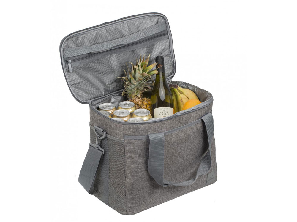 Изотермическая сумка-холодильник на 54 банки 0,33 л (36 банок 0,5 л) • Разработана для переноски банок 0.5 л, наиболее распространенных в Европе (также для ПЭТ бутылок 2л) • Система компактного хранения без внешних ответных частей • Внутренний сетчатый карман на молнии для мелких предметов • Три наружных кармана • Светлая цветовая гамма для уменьшения нагревания под лучами солнца • Немаркий внешний материал с водоотталкивающей пропиткой • Герметичная подкладка • Съемный регулируемый плечевой ремень с надежным креплением в дно сумки, с подушкой для плеча Внутренний объем 30 л