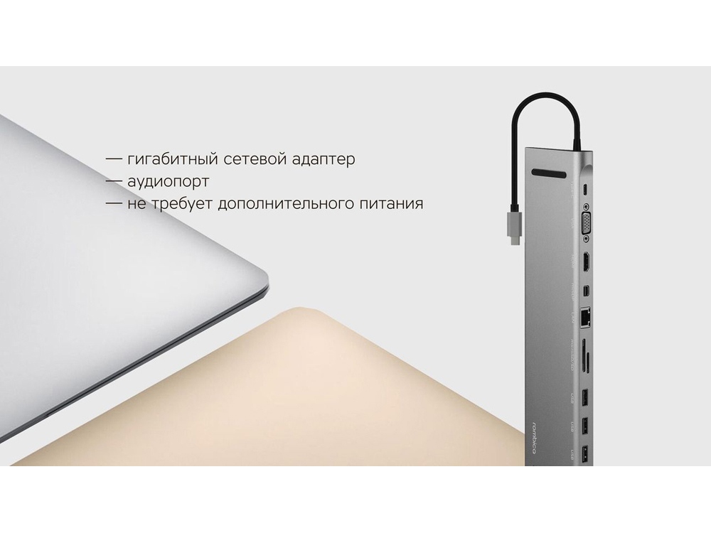 • Для ноутбуков с интерфейсом USB Type-C • 3 высокоскоростных порта USB 3.0 • Видеовыход HDMI 4K, mini Display Port 4K, VGA * • Type-C Power Delivery до 87 Вт ** • Картридер для microSDXC и SDXC карт памяти • Гигабитный сетевой адаптер • Аудиопорт • Не требует дополнительного питания • Алюминиевый корпус • Удобный форм-фактор * Для работы видеовыходов требуется поддержка Alternate Mode (альтернативный режим) на Type-C порту ноутбука, к которому подключена док-станция. ** Для зарядки ноутбука через порт док-станции Type-C требуется использовать штатное зарядное устройство для ноутбука (в комплект устройства не входит). Ноутбук должен поддерживать зарядку через порт USB Type-C Female, к которому подключена док-станция. Коннектор для подключения к компьютеру: USB 3.0 Type-C Интерфейсы: • USB Type-C Power Delivery до 87 Вт • HDMI видеовыход 4К@30Гц, 1080p@60Гц • mini DisplayPort видеовыход 4К@30Гц, 1080p@60Гц • VGA видеовыход 1080p@60Гц • 3 x USB 3.0 Type-A SuperSpeed • Слот SDXC • Слот microSDXC • LAN порт 10/100/1000 Мбит/c • Аудиопорт Совместимость с ОС: Windows 8.1/10, macOS 10.10 - 10.1x Рабочее напряжение: 5В Питание: от Type-C порта (пассивное) Максимальная мощность PD: 87 Вт Размеры: 295 x 80 x 18 мм Вес:234± 5 г