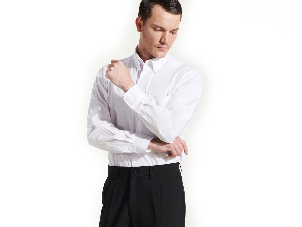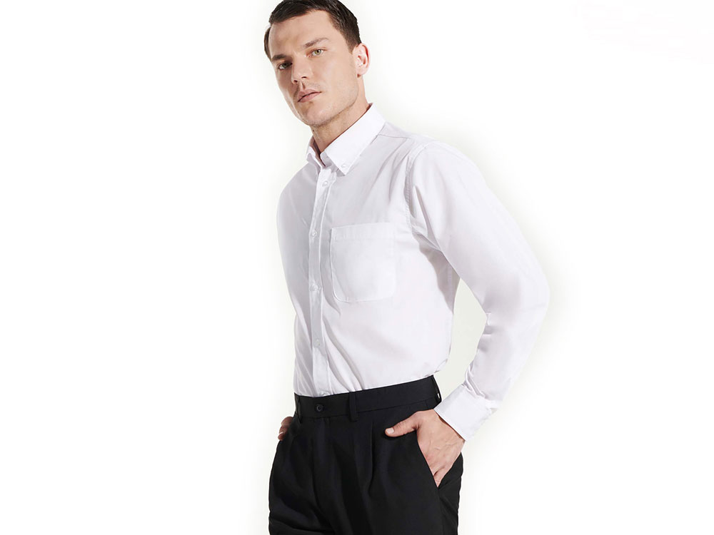 Рубашка мужская с длинным рукавом на семи пуговицах. Накладной карман на груди слева, закругленный низ изделия. Уголки воротника продублированы пуговицами. В ассортименте представлена аналогичная женская модель рубашки Aifos.