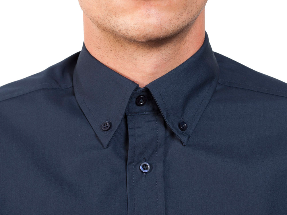 Рубашка мужская с длинным рукавом на семи пуговицах. Накладной карман на груди слева, закругленный низ изделия. Уголки воротника продублированы пуговицами. В ассортименте представлена аналогичная женская модель рубашки Aifos.