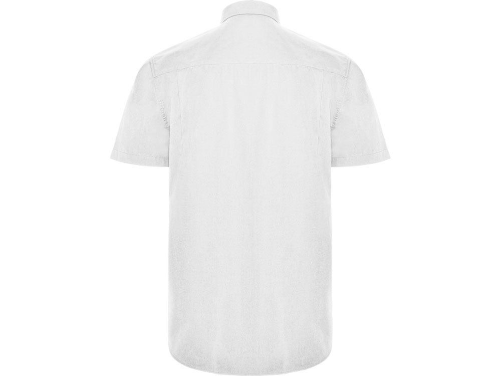 Рубашка мужская с коротким рукавом на семи пуговицах. Накладной карман на груди слева, закругленный низ изделия. Уголки воротника продублированы пуговицами. В ассортименте представлена аналогичная женская модель рубашки Aifos.