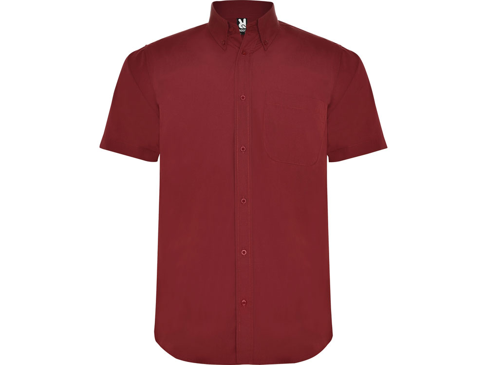 Рубашка мужская с коротким рукавом на семи пуговицах. Накладной карман на груди слева, закругленный низ изделия. Уголки воротника продублированы пуговицами. В ассортименте представлена аналогичная женская модель рубашки Aifos.