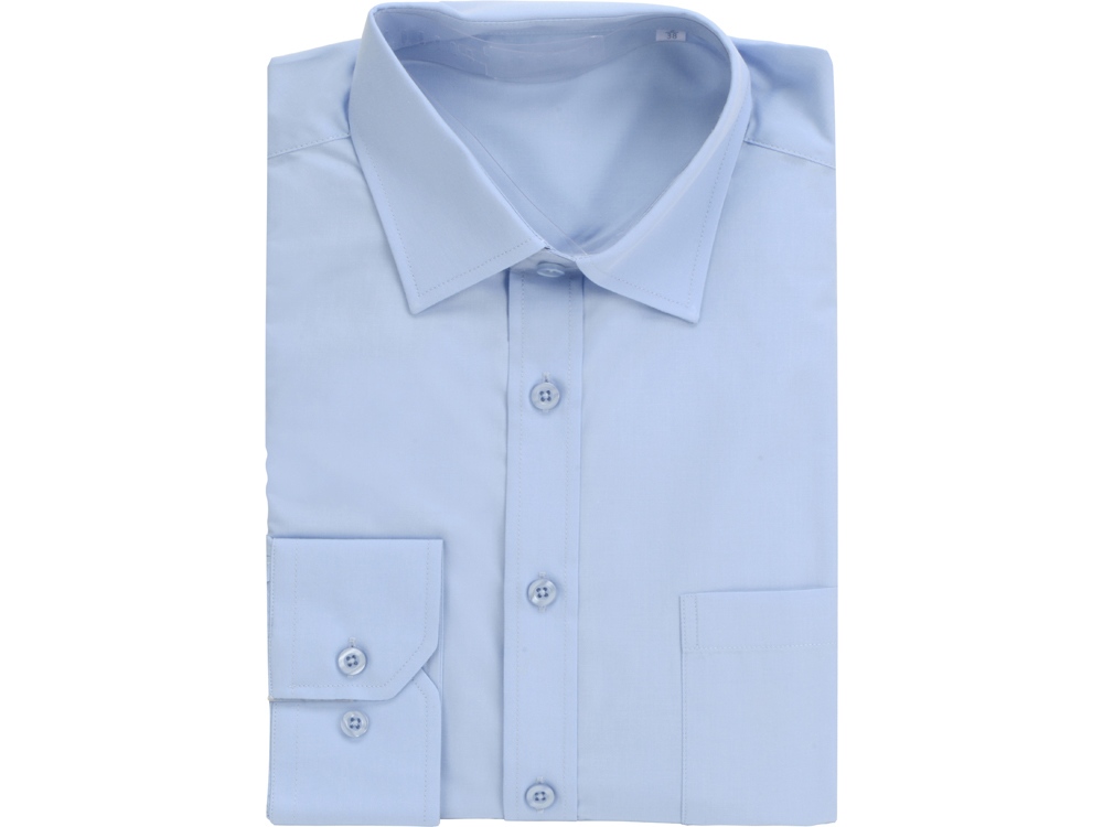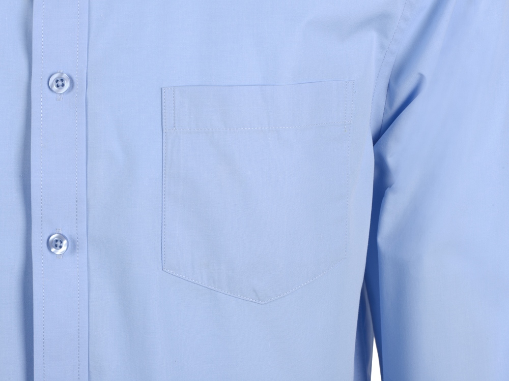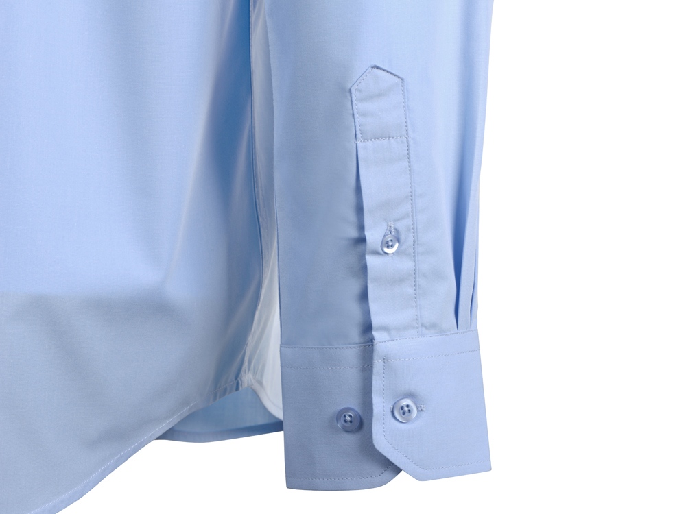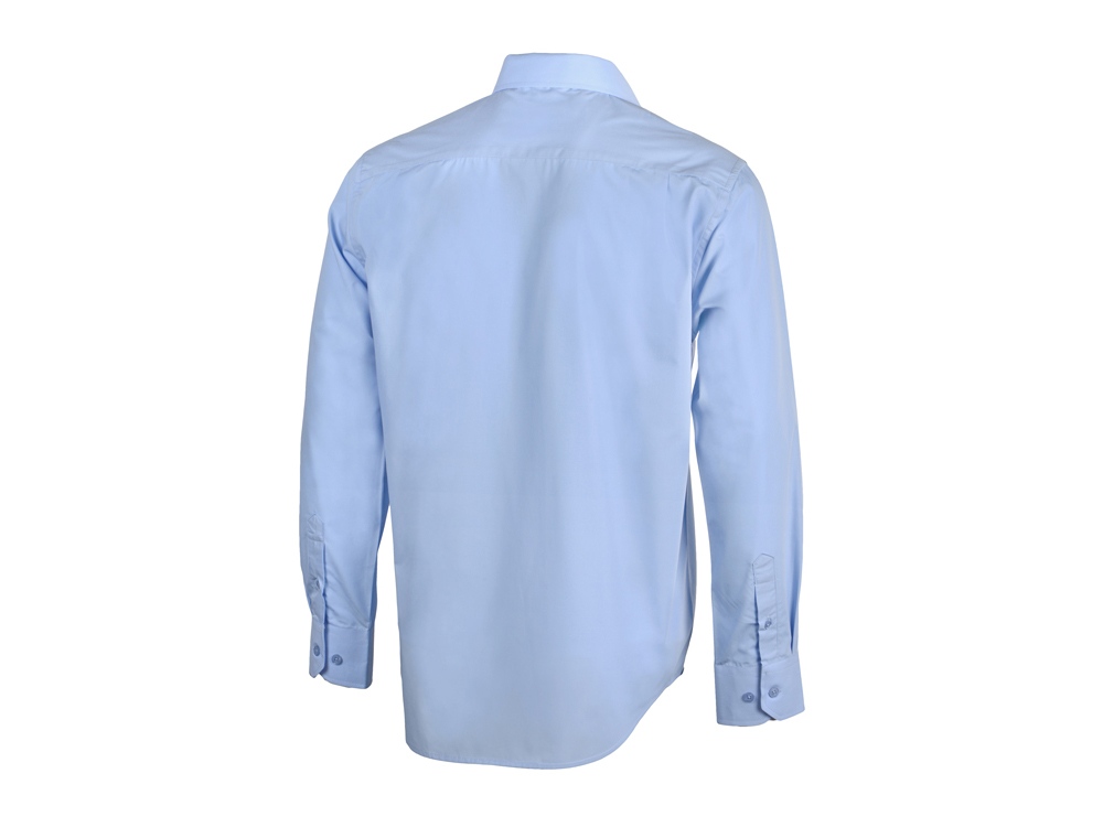 Рубашка мужская с длинным рукавом на семи пуговицах. Накладной карман на груди слева, на спинке складки из-под кокетки, манжеты с двумя пуговицами и пуговица по планке рукава.