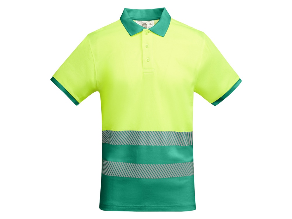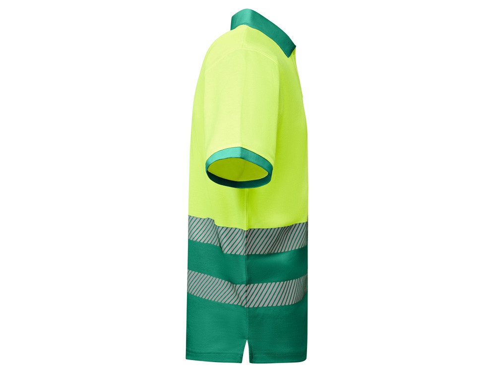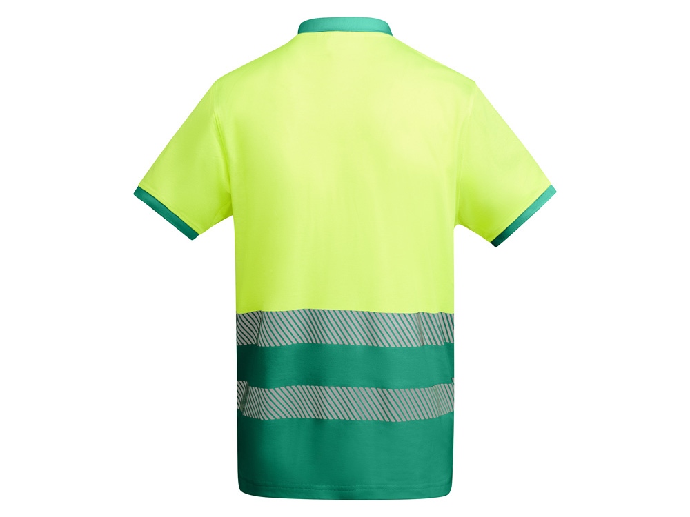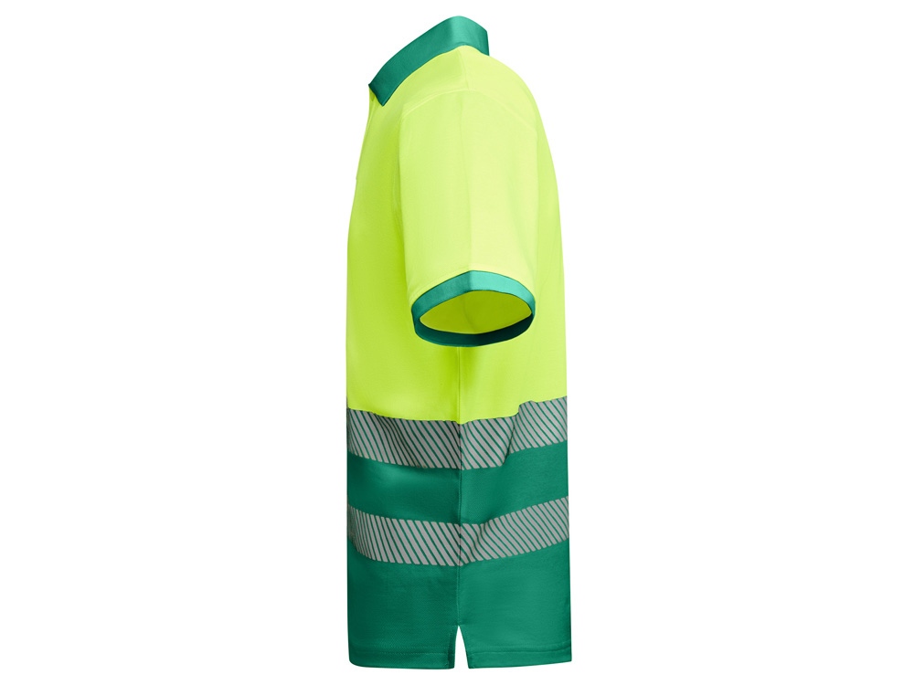 Рубашка поло со светоотражающими элементами с коротким рукавом с воротником в рубчик 1x1. Планка на 3 пуговицы. Две светоотражающие сегментированные полосы на груди. Микс полиэстера и хлопка для повышенной воздухопроницаемости. Дополнительный карман.
