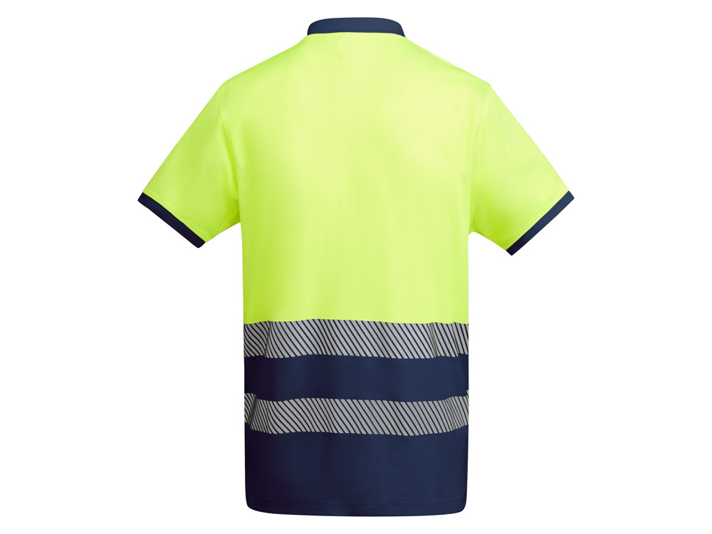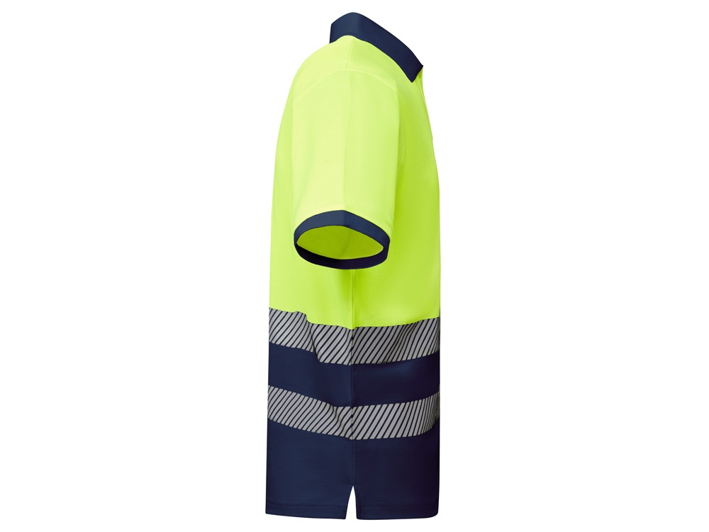 Рубашка поло со светоотражающими элементами с коротким рукавом с воротником в рубчик 1x1. Планка на 3 пуговицы. Две светоотражающие сегментированные полосы на груди. Микс полиэстера и хлопка для повышенной воздухопроницаемости. Дополнительный карман.