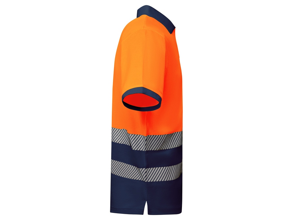 Рубашка поло со светоотражающими элементами с коротким рукавом с воротником в рубчик 1x1. Планка на 3 пуговицы. Две светоотражающие сегментированные полосы на груди. Микс полиэстера и хлопка для повышенной воздухопроницаемости. Дополнительный карман.