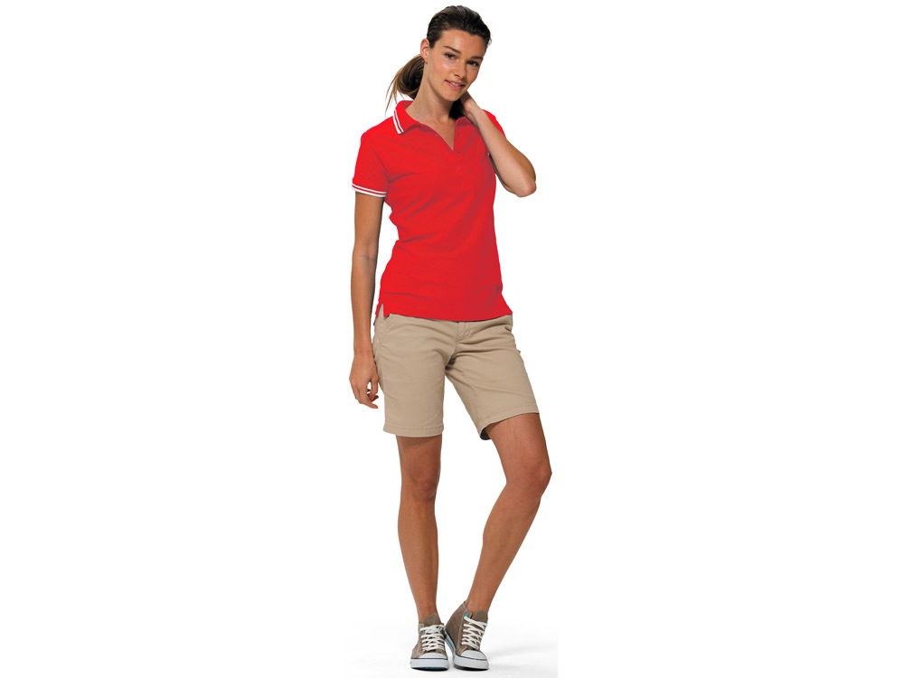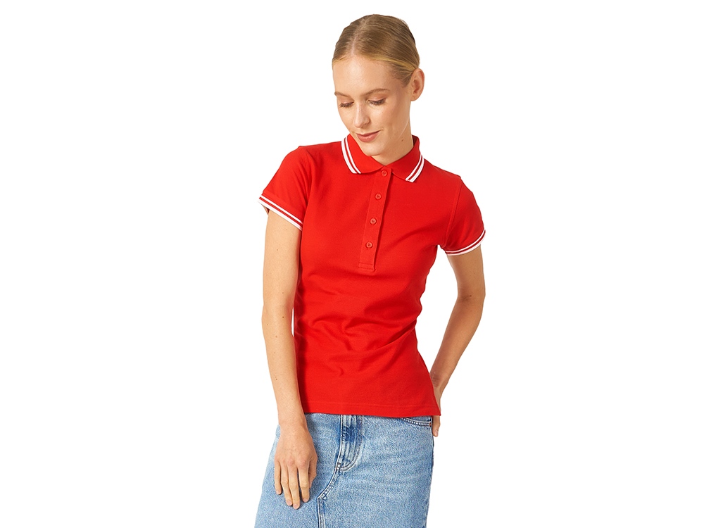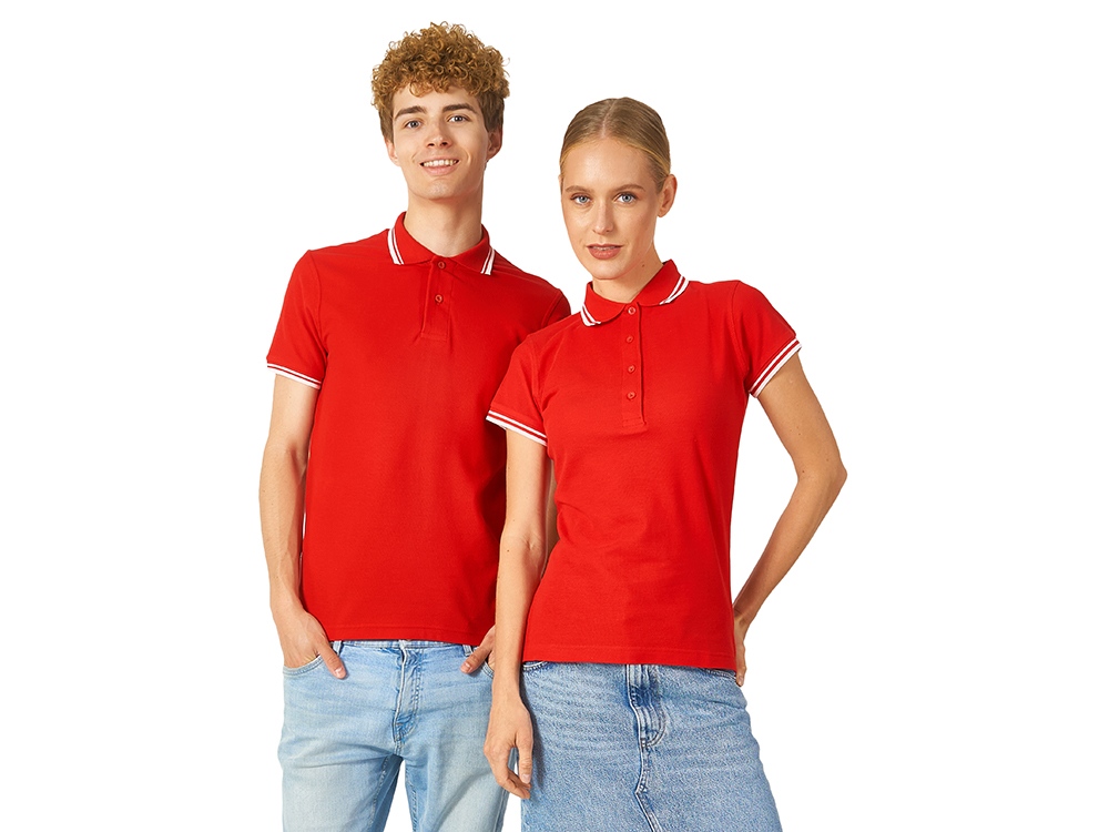 Рубашка-поло Erie с окантовкой. Воротник и манжеты резинка 1х1. Мужская модель с двумя пуговицами, женская - 4 пуговицы в тон изделия. Обшивка внутри воротника. Женская модель с разрезами по бокам. Женская модель приталена. Пике, 100% чесаный хлопок. Плотность 180 г/м2.