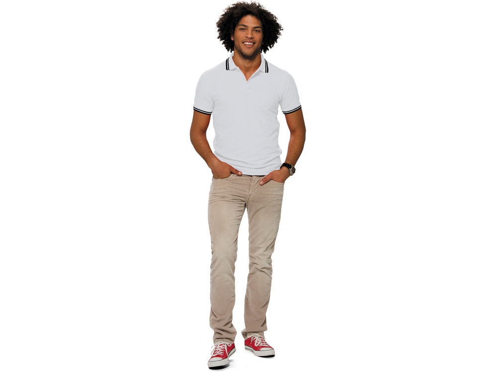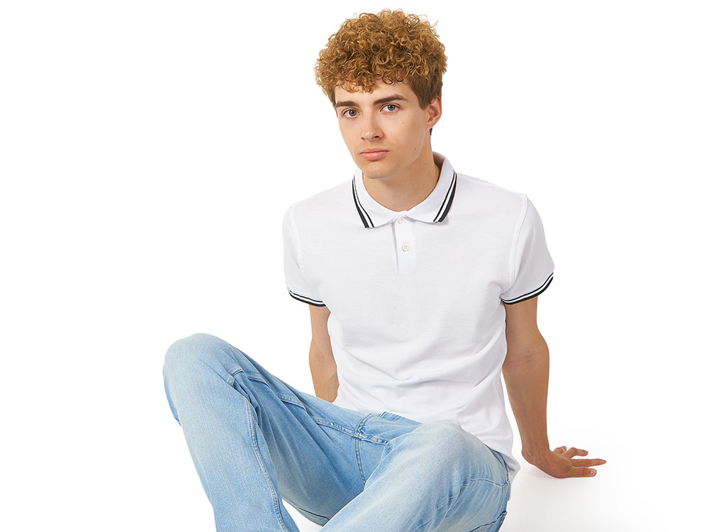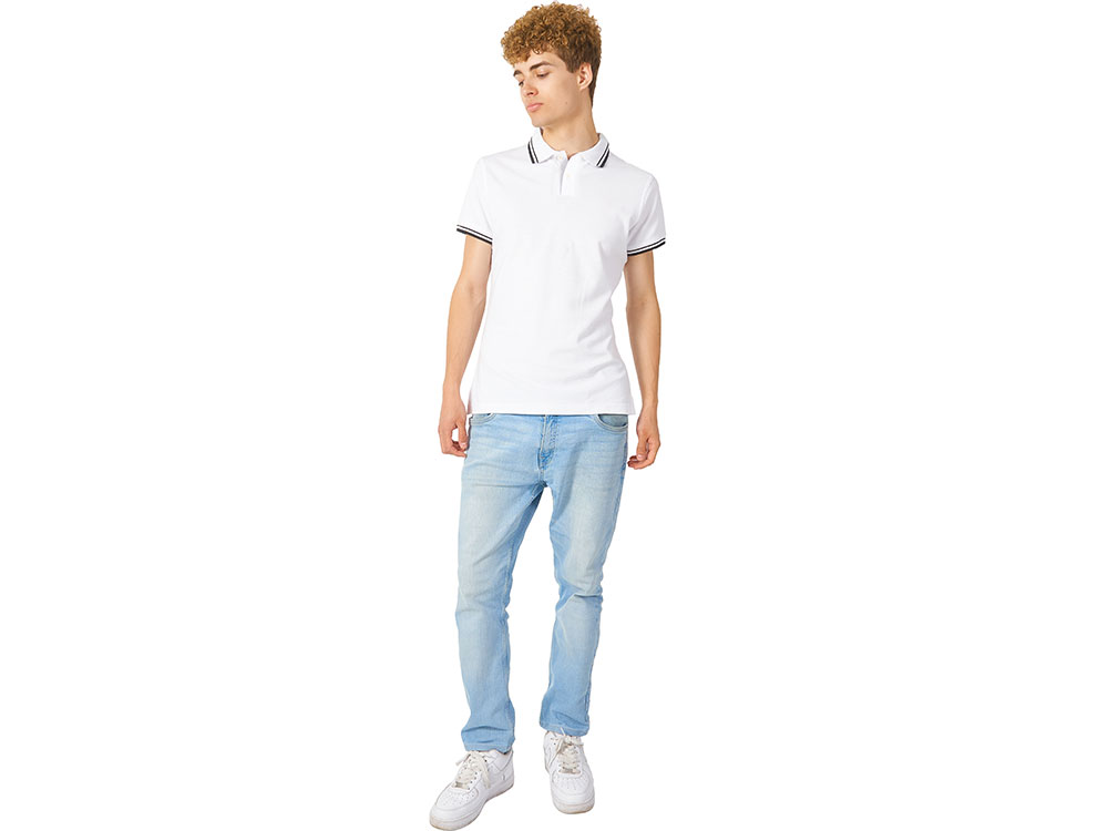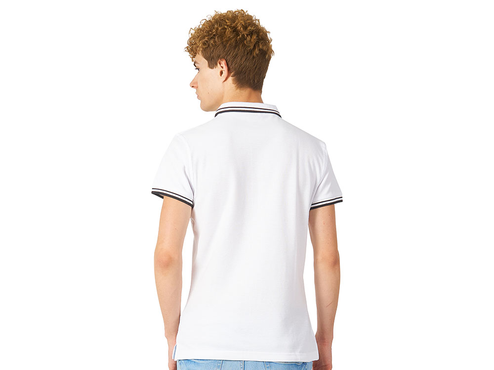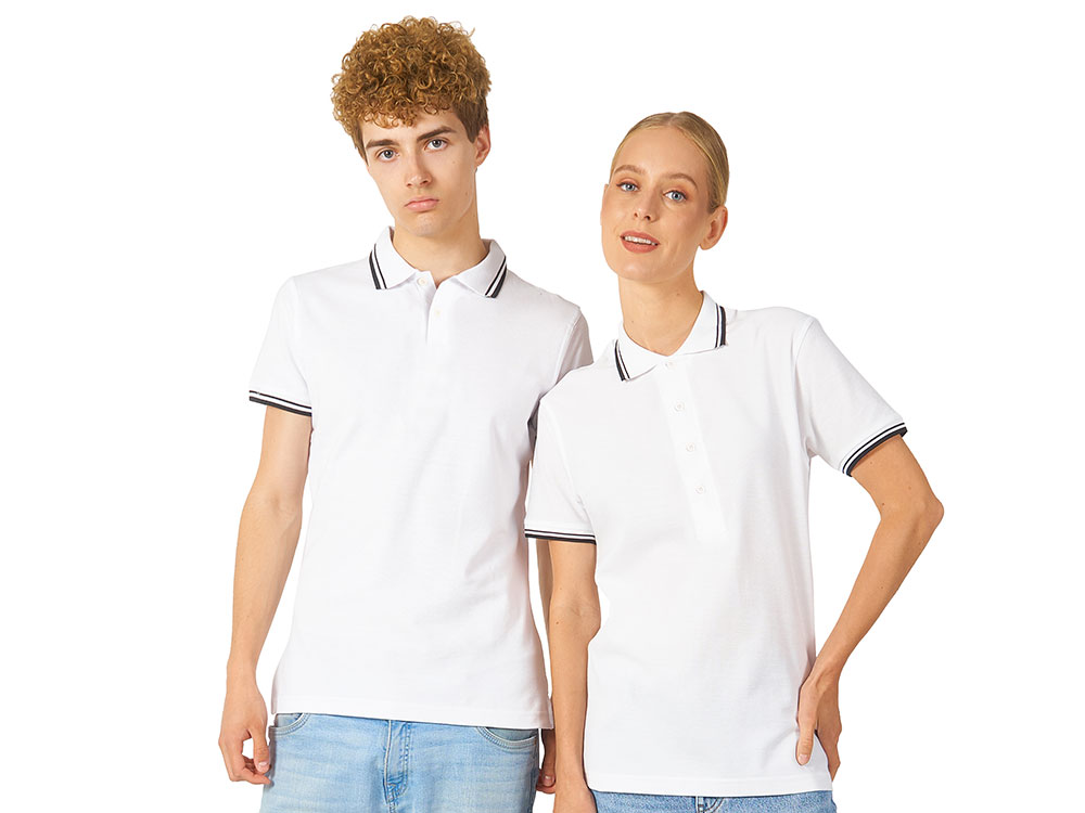 Рубашка-поло Erie с окантовкой. Воротник и манжеты резинка 1х1. Мужская модель с двумя пуговицами, женская - 4 пуговицы в тон изделия. Обшивка внутри воротника. Женская модель с разрезами по бокам. Женская модель приталена. Пике, 100% чесаный хлопок. Плотность 180 г/м2.
