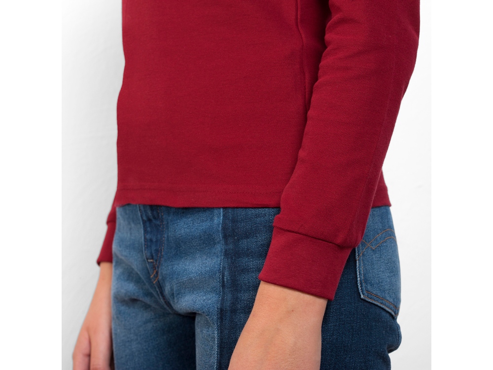 Рубашка поло с длинными рукавами. Воротник и манжеты рукавов из риба 1х1 с эластаном, планка на 3 пуговицы. Приталенный силуэт