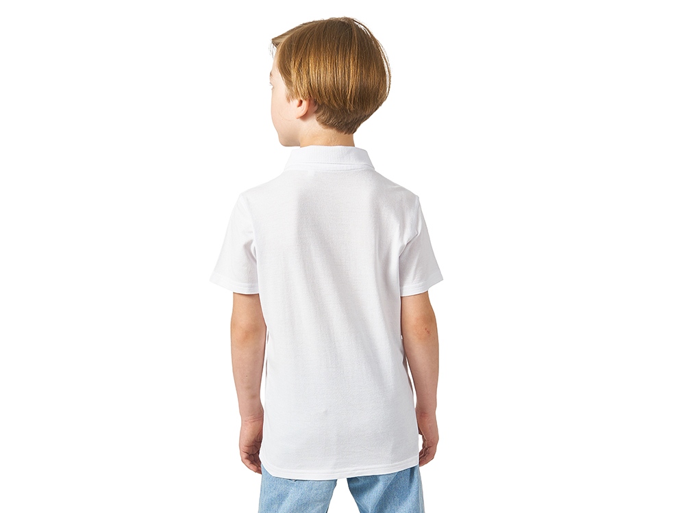 Детская рубашка поло First. Воротник 1х1. Обшивка внутри воротника. Мужская и детская модели с 2 пуговицами, женская - с 4 пуговицами. Пуговицы с гравировкой в тон. Пике, 100% хлопок. 160 г/м².