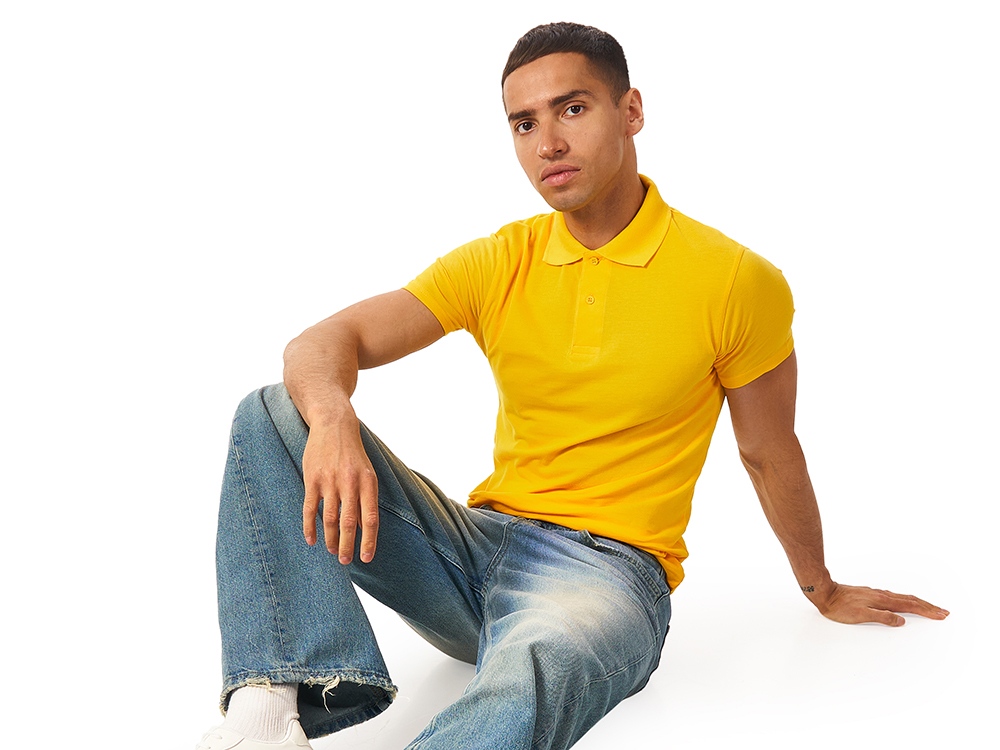 Рубашка поло First мужская, золотисто-желтый купить оптом и в розницу с нанесением логотипа в Нижнем Новгороде