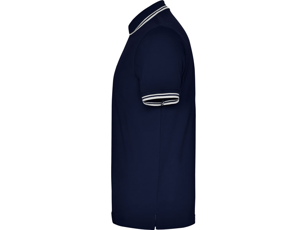 Поло с коротким рукавом. Воротник и манжеты из риба 1х1 с отделкой двойной контрастной плоской. Внутренняя планка контрастного цвета, застежка на 3 пуговицы. Разрезы в боковых швах. Премиальное плотное пике 230 гр.
