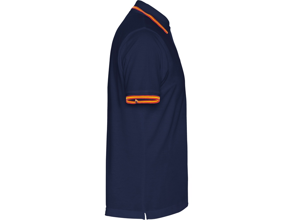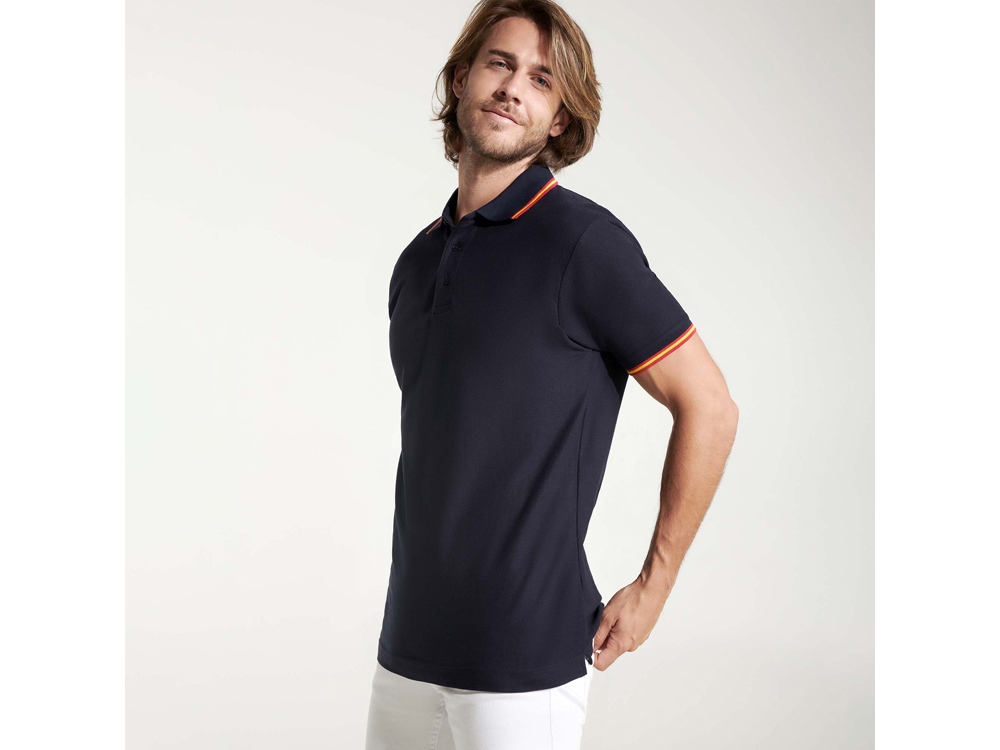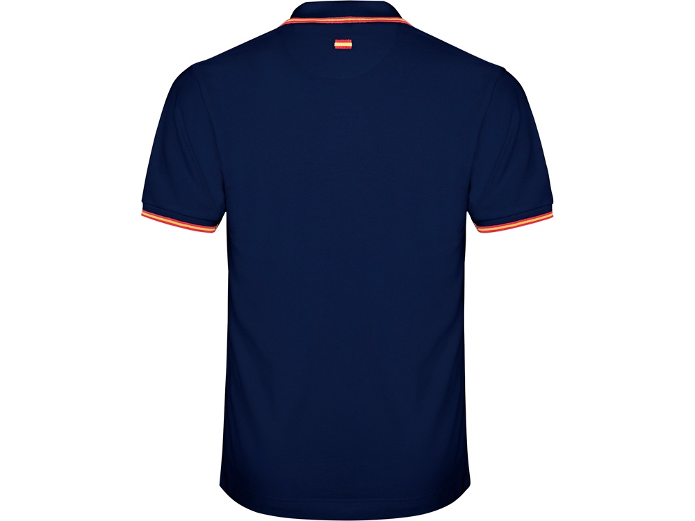 Рубашка поло с коротким рукавом и планкой на 3 пуговицы. Контрастные полоски по манжетам и воротнику. Вышивка в виде флага на спинке