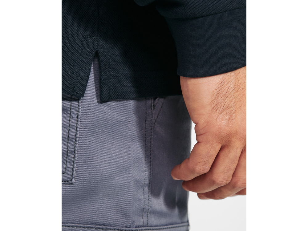 Рубашка·поло с длинным рукавом. Воротник и отделка рукавов рибом 1x1. Планка с застежкой на липучке. Усиленные закрытые швы в воротнике. Боковые разрезы внизу.