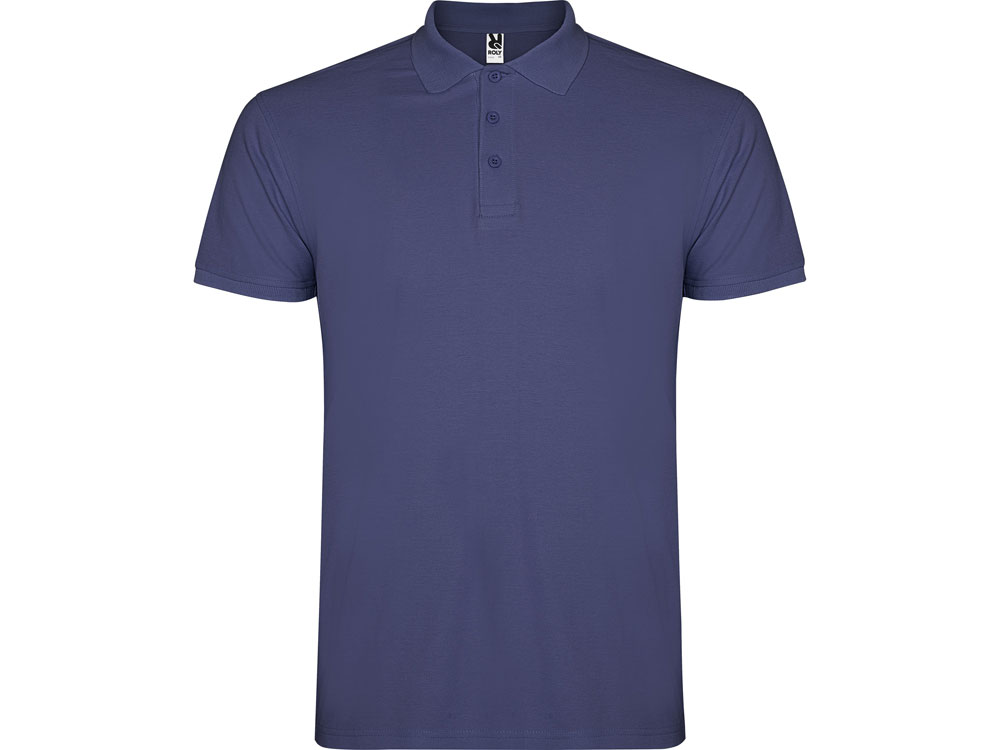Поло с коротким рукавом, воротник и манжеты из риба 1х1, отделка горловины внутри тесьмой. Планка застегивается на 3 пуговицы. Разрезы в боковых швах. В ассортименте также представлены аналогичная женская модель Star.