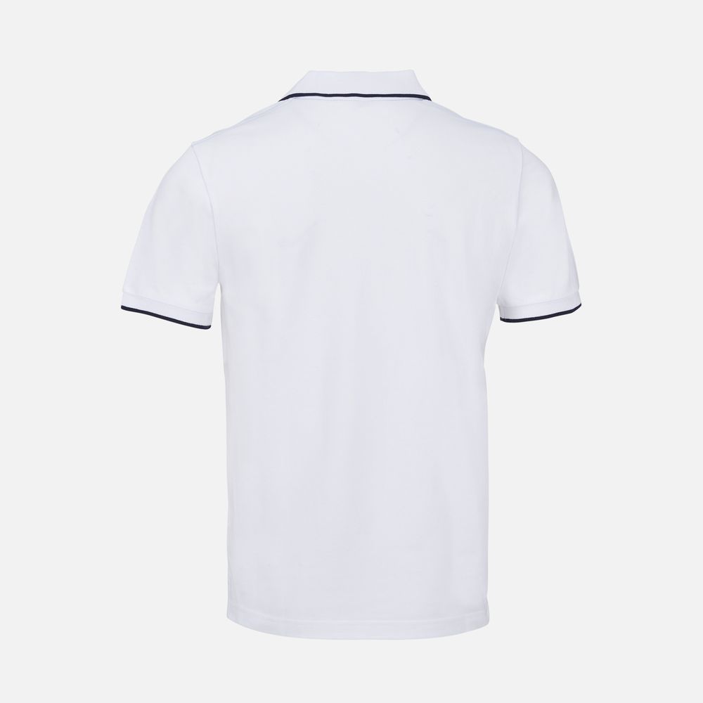 Рубашка поло унисекс Palermo, белая с темно-синим купить оптом и в розницу с нанесением логотипа в Нижнем Новгороде