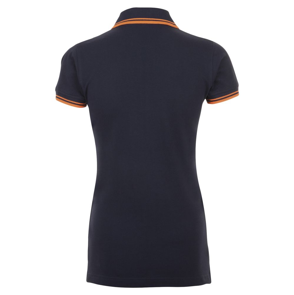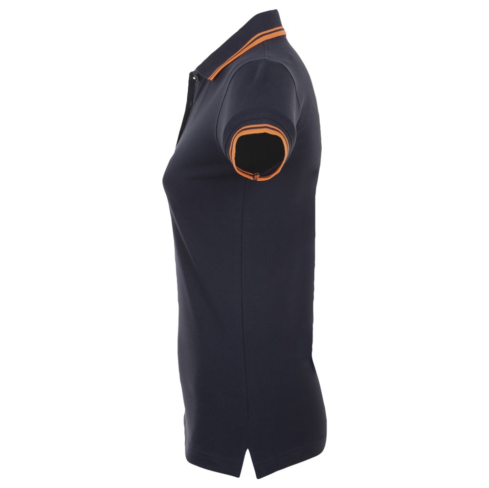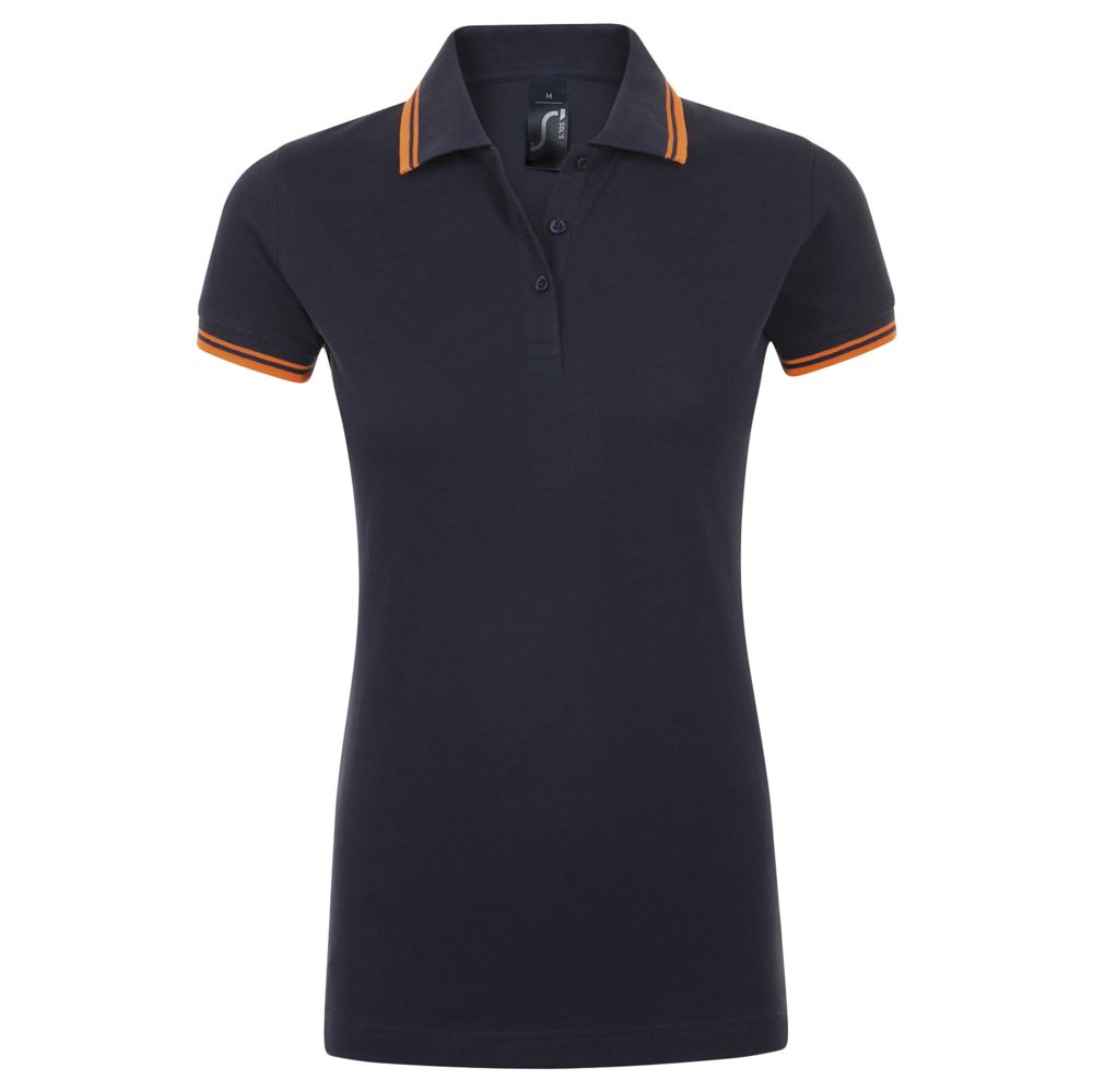 Рубашка поло женская Pasadena Women 200 с контрастной отделкой, темно-синяя (navy) с неоново-оранжевым купить оптом и в розницу с нанесением логотипа в Нижнем Новгороде