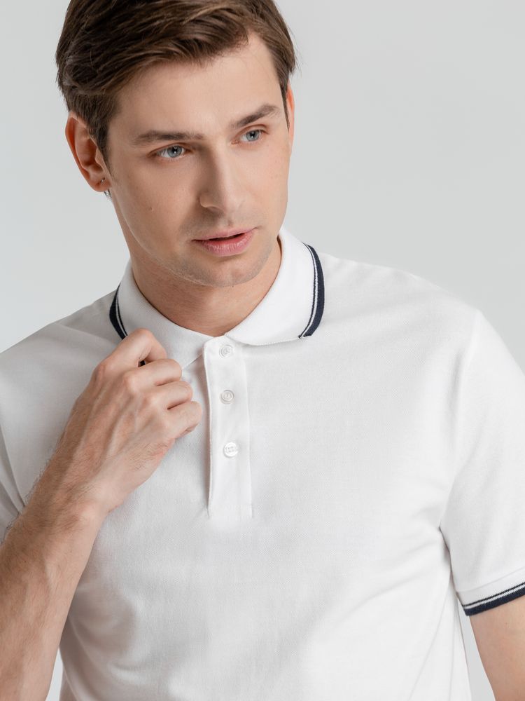Рубашка поло мужская с контрастной отделкой Practice 270, белый/темно-синий купить оптом и в розницу с нанесением логотипа в Нижнем Новгороде