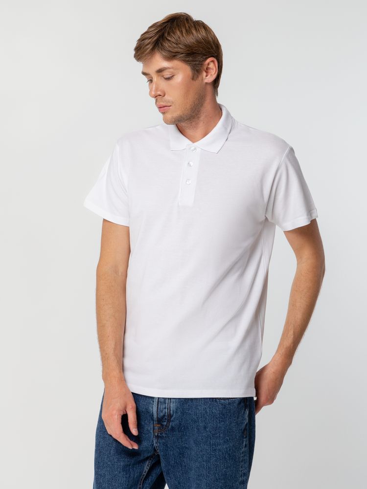 Рубашка поло мужская Spring 210, белая купить оптом и в розницу с нанесением логотипа в Нижнем Новгороде