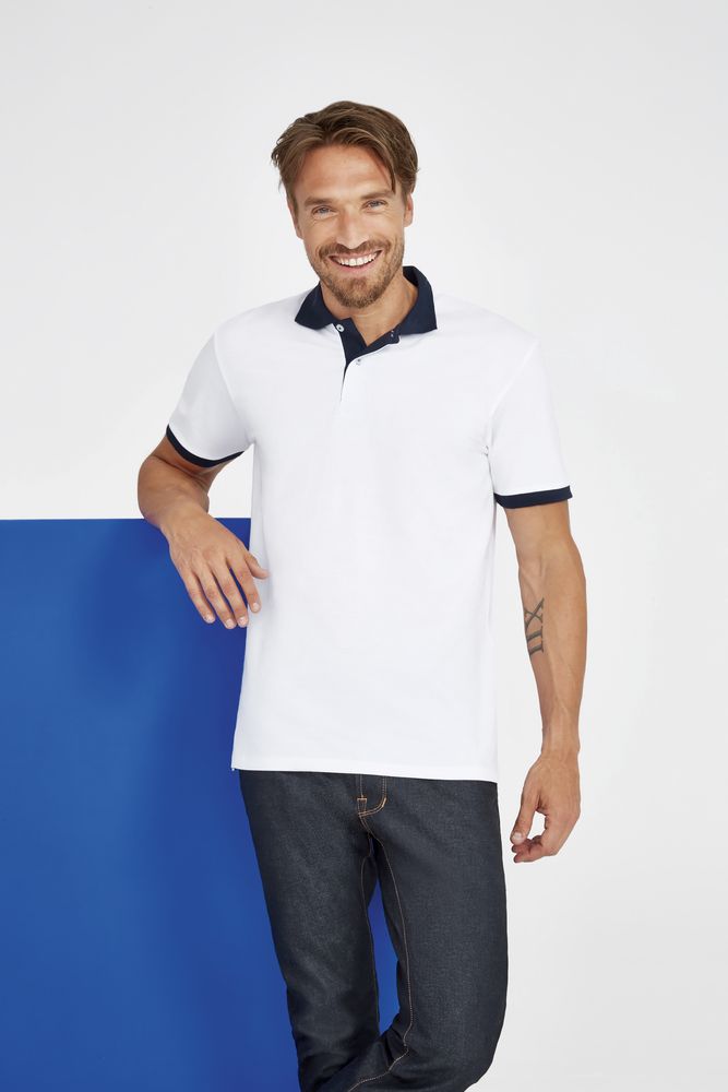 Рубашка поло Prince 190, темно-синяя с белым купить оптом и в розницу с нанесением логотипа в Нижнем Новгороде