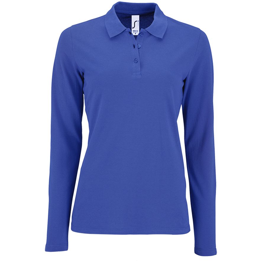 Рубашка поло женская с длинным рукавом Perfect LSL Women, ярко-синяя купить оптом и в розницу с нанесением логотипа в Нижнем Новгороде