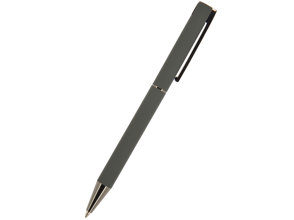 Элегантная ручка в сером корпусе. Автоматическая ручка с поворотным механизмом. Матовое нескользящее покрытие ручки. Толстый кончик стержня обеспечивает легкость письма и аккуратность почерка.