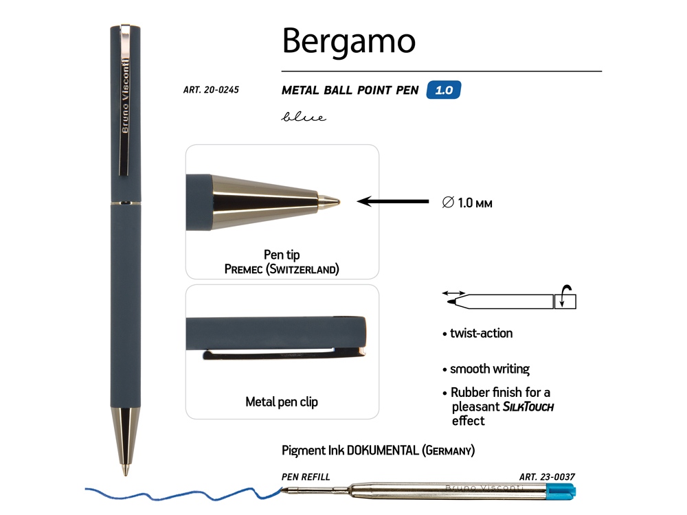 Ручка Bergamo шариковая автоматическая, синий металлический корпус, 0,7 мм, синяя