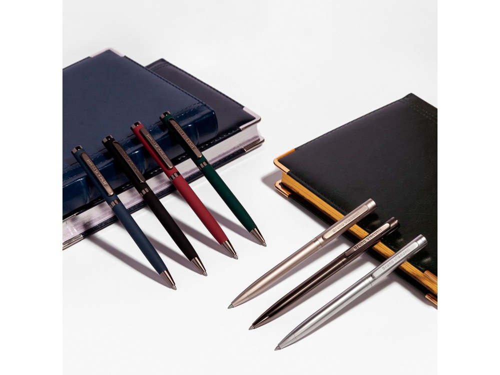 Шариковая металлическая ручка из коллекции Firenze от Bruno Visconti - бизнес-аксессуар, с которым вы всегда будете чувствовать себя уверенно и комфортно. Лаконичный дизайн, прочный металлический корпус, строгость формы подчеркнут статус владельца ручки. Удобство в эксплуатации и тактильно приятные ощущения подарит бархатистое покрытие Soft Touch. Ручка автоматическая, с легким поворотным механизмом подачи стержня. Надежный пишущий узел d 1,0 мм (от швейцарского производителя Premec) гарантирует высокое качество также, как и пигментные чернила Dokumental (Германия). Благодаря им писать ручкой Firenze одно удовольствие – она мягко скользит по поверхности бумаги, оставляя ровную, четкую линию.