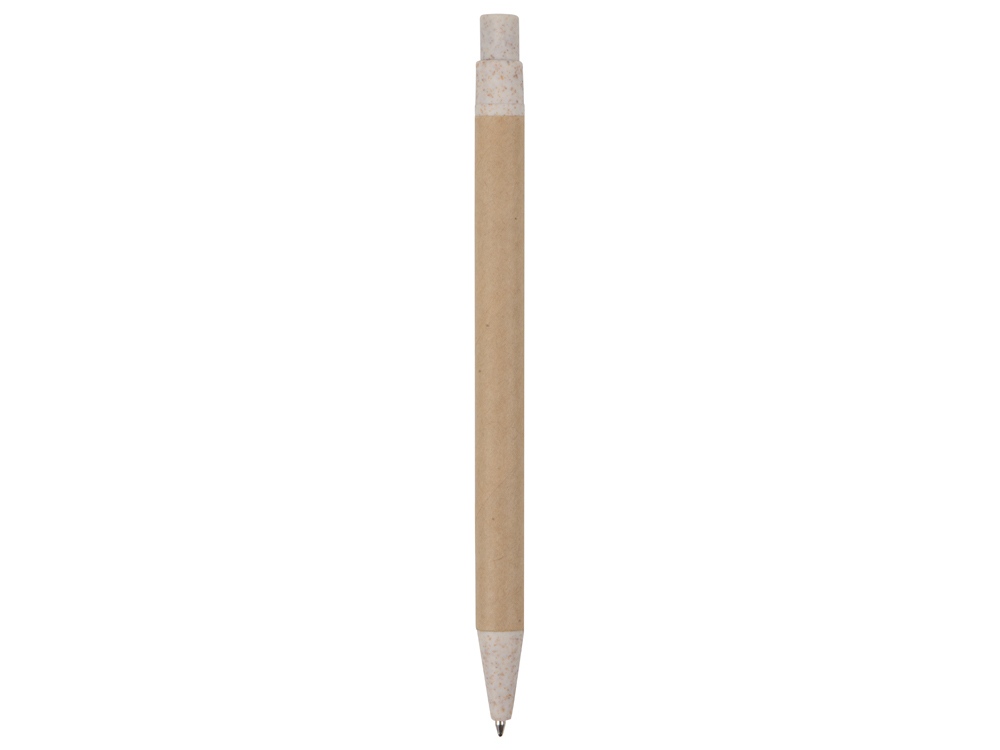 Шариковая ручка с нажимным механизмом. Удобный корпус сделан из переработанного картона. Клип, кнопка и носик ручки на 50% состоят из пшеничной соломы, на 50% — из переработанного пластика. Настоящая находка для тех, кто предпочитает использовать изделия из биоразлагаемых материалов и заботится о сохранности окружающей среды.