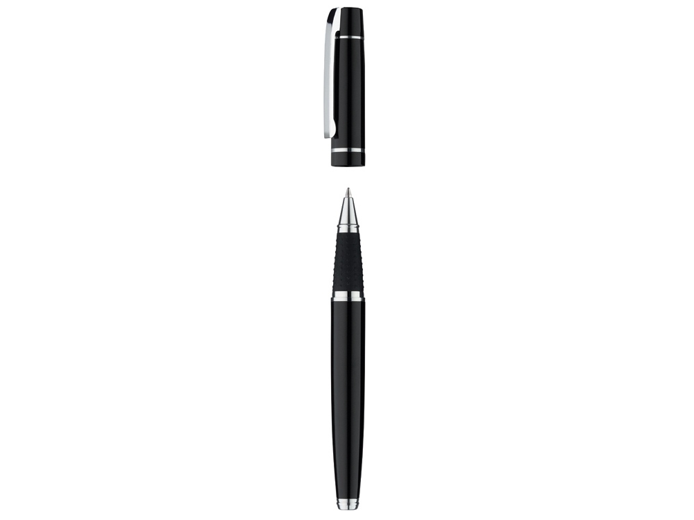Металлическая ручка-роллер с пружинным клипом и нескользящей прорезиненной зоной захвата черного цвета. Фурнитура с глянцевой хромированной отделкой. Европейский стержень с наконечником из нержавеющей стали и вольфрамово-карбидным шариком (0,7 мм). Длина письма: примерно 800 м. Немецкие чернила. Произведено в Германии. Стержни для шариковых ручек Uma не высыхают даже при снятом колпачке. Именно поэтому мы подтверждаем экстра длительное время „cap-off.