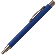 Шариковая алюминиевая ручка с покрытием soft-touch. Нажимной механизм. Размер ручки: ø10 x 137 мм Цвет чернил: синий