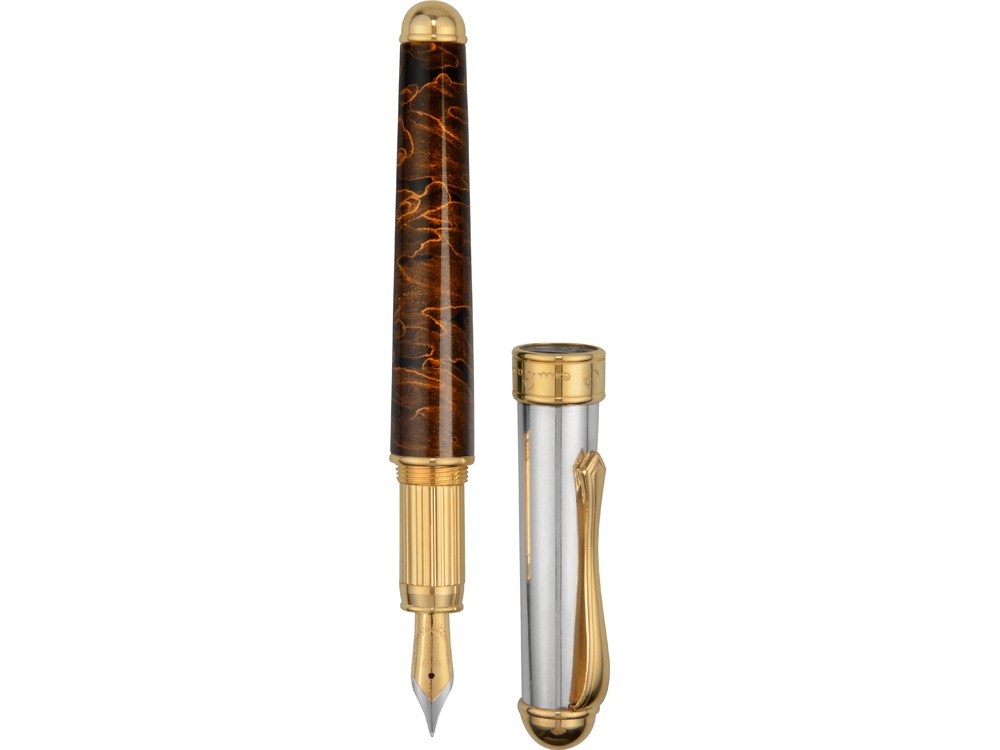Роскошная перьевая ручка сделана из латуни с посеребрением и полированного панциря черепахи. Стильный дизайн и идеальное сочетание различных материалов делает эту ручку незаменимым помощником делового человека.