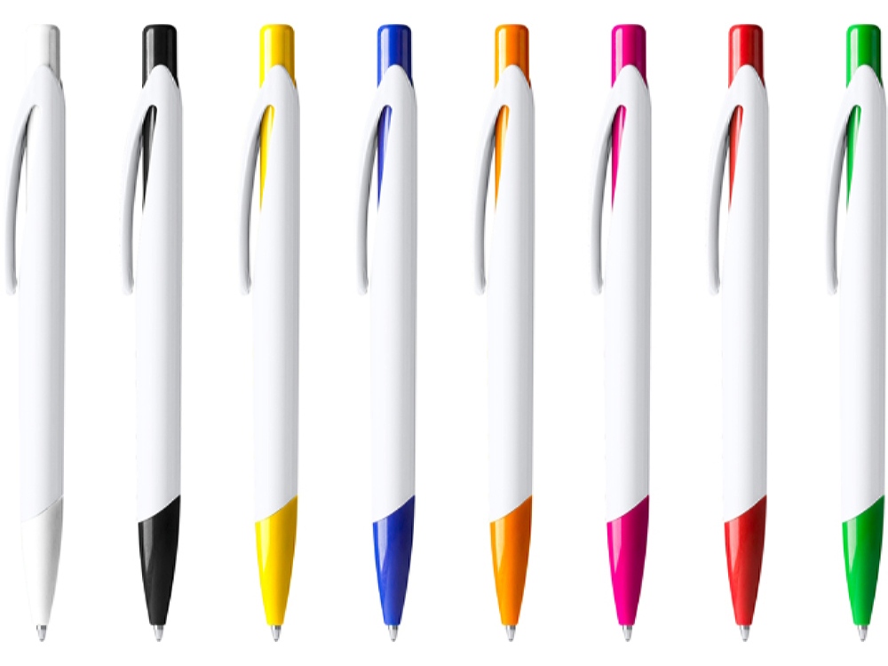 Шариковая ручка с контрастными нажимным механизмом и наконечником.