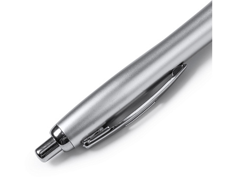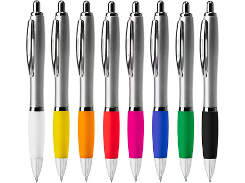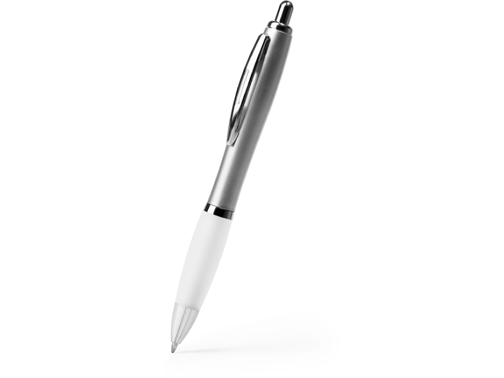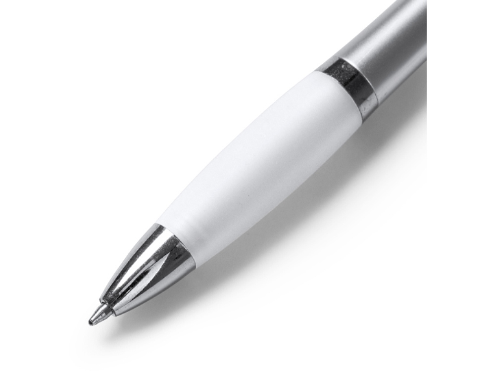 Шариковая ручка с серебристым корпусом из АБС-пластика и полупрозрачным мягким грипом