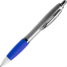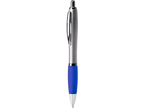 Шариковая ручка с серебристым корпусом из АБС-пластика и полупрозрачным мягким грипом