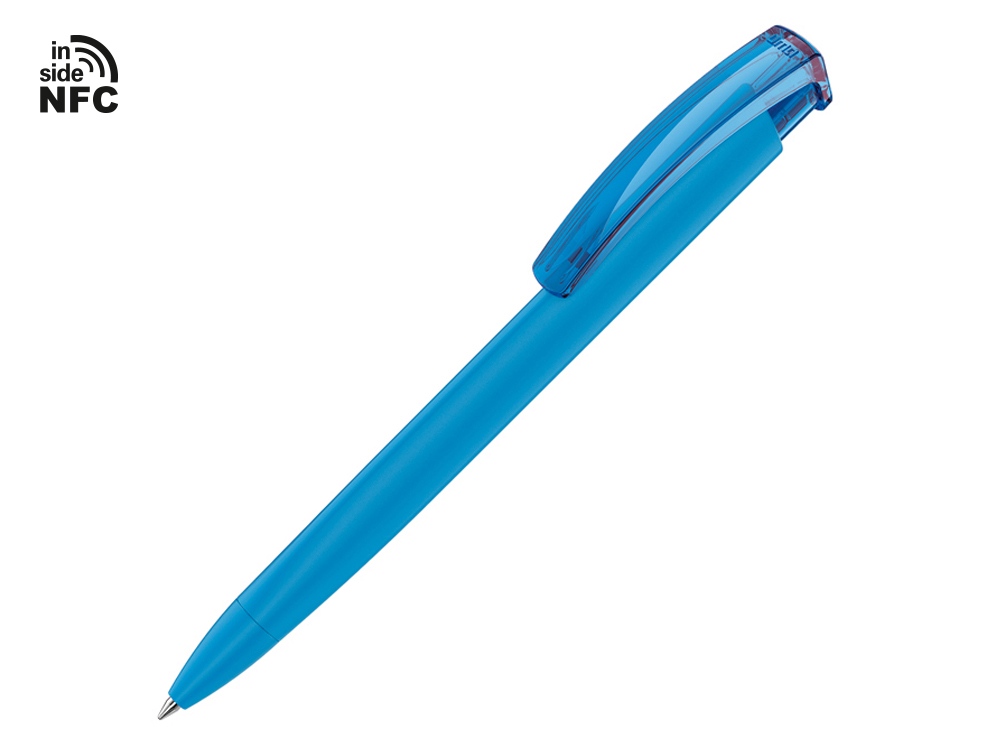 Пластиковая шариковая ручка Trinity K transparent Gum soft-touch с чипом передачи информации NFC обеспечивает быстрый доступ к рекламной информации. Для передачи данных посредством технологии NFC смартфон или планшет, которые поддерживают данную технологию, необходимо поднести к запрограммированной на ручке метке NFC (метка расположена под логотипом NFC). После этого на смартфоне или планшете откроется запрограммированная ссылка на сайт, ролик или начнется загрузка другой информации (заранее загруженной в сеть интернет). Таким образом метка работает как код, при чтении которого смартфон или планшет открывает определенную программу, активирует функцию или ссылку. Можно запрограммировать на метке NFC адрес сайта, каталог и другие рекламные материалы и раздавать вместо визиток. Метка NFC активирует одно действие на смартфоне или планшете. Внимание, программирование метки производится только компанией UMA. Если вы разместили заказ на ручку с меткой, но не прислали информацию, которую необходимо на нее записать, в заказе может быть отгружена ручка без чипа NFC.