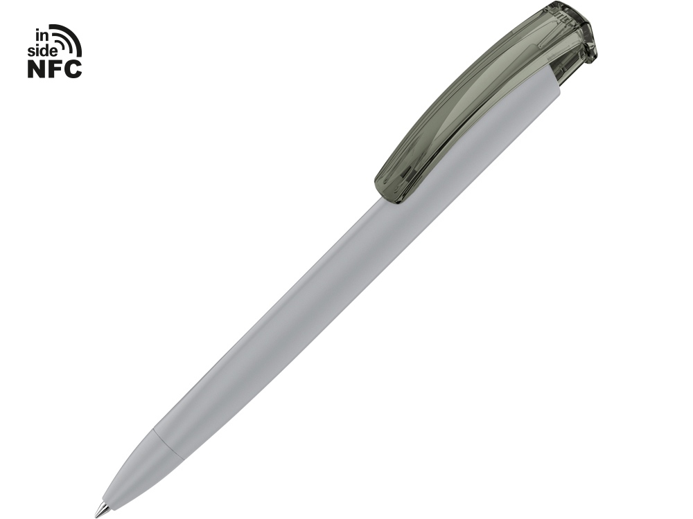 Пластиковая шариковая ручка Trinity K transparent Gum soft-touch с чипом передачи информации NFC обеспечивает быстрый доступ к рекламной информации. Для передачи данных посредством технологии NFC смартфон или планшет, которые поддерживают данную технологию, необходимо поднести к запрограммированной на ручке метке NFC (метка расположена под логотипом NFC). После этого на смартфоне или планшете откроется запрограммированная ссылка на сайт, ролик или начнется загрузка другой информации (заранее загруженной в сеть интернет). Таким образом метка работает как код, при чтении которого смартфон или планшет открывает определенную программу, активирует функцию или ссылку. Можно запрограммировать на метке NFC адрес сайта, каталог и другие рекламные материалы и раздавать вместо визиток. Метка NFC активирует одно действие на смартфоне или планшете. Внимание, программирование метки производится только компанией UMA. Если вы разместили заказ на ручку с меткой, но не прислали информацию, которую необходимо на нее записать, в заказе может быть отгружена ручка без чипа NFC.