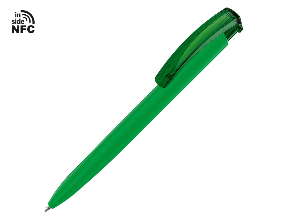 Пластиковая шариковая ручка Trinity K transparent Gum soft-touch с чипом передачи информации NFC обеспечивает быстрый доступ к рекламной информации. Для передачи данных посредством технологии NFC смартфон или планшет, которые поддерживают данную технологию, необходимо поднести к запрограммированной на ручке метке NFC (метка расположена под логотипом NFC). После этого на смартфоне или планшете откроется запрограммированная ссылка на сайт, ролик или начнется загрузка другой информации (заранее загруженной в сеть интернет). Таким образом метка работает как код, при чтении которого смартфон или планшет открывает определенную программу, активирует функцию или ссылку. Можно запрограммировать на метке NFC адрес сайта, каталог и другие рекламные материалы и раздавать вместо визиток. Метка NFC активирует одно действие на смартфоне или планшете. Внимание, программирование метки производится только компанией UMA. Если вы разместили заказ на ручку с меткой, но не прислали информацию, которую необходимо на нее записать, в заказе может быть отгружена ручка без чипа NFC.