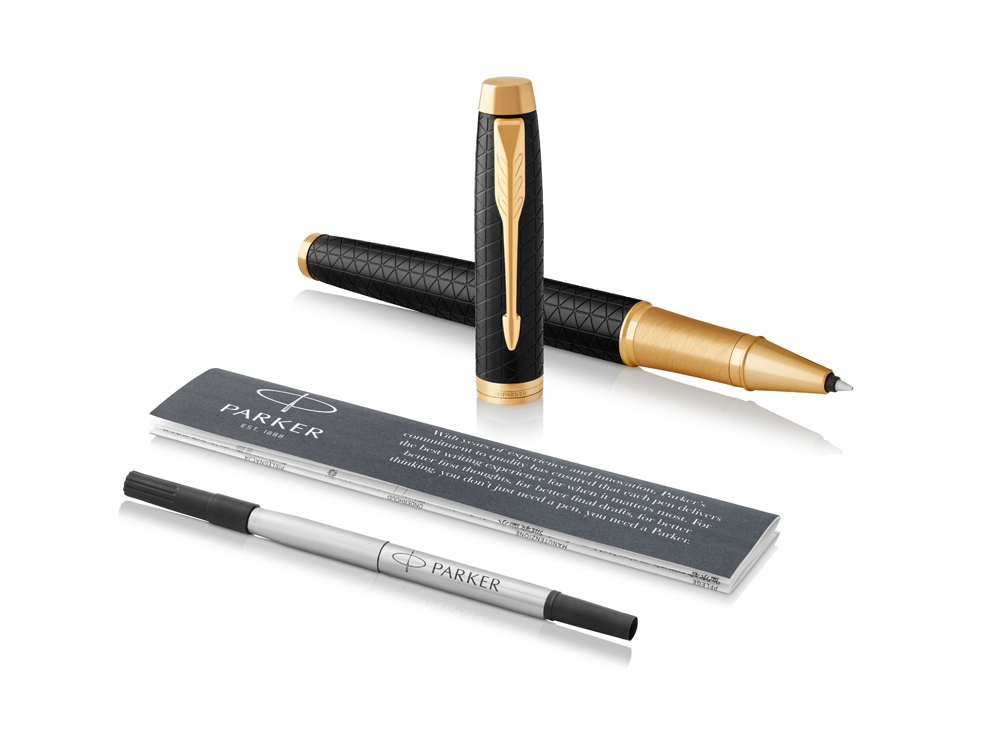 Черный матовый анодированный алюминий, прошедший пескоструйную обработку, прекрасно сочетается с оригинальными и актуальными гравированными узорами. Дизайн дополнен позолоченными декоративными элементами. Ручка упакована в подарочную коробку Parker.