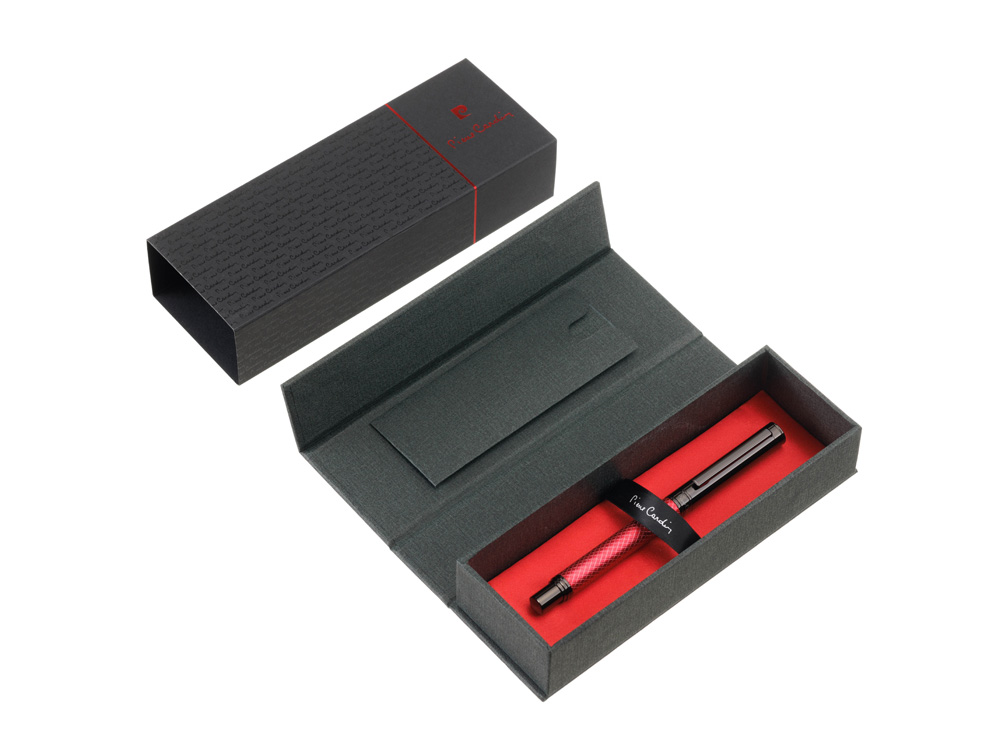 Ручка-роллер Pierre Cardin LOSANGE PC0112RP • Корпус - латунь. Цвет - красный; • Клип - нержавеющая сталь; • Отделка - матовая; • Детали дизайна - геометрическая гравировка; • Упаковка - жесткая картонная коробочка с мягким тканевым ложементом с фирменным дизайном + фирменная защитная муфта. • Размер упаковки - 180 х 68 х 40 мм, вес 133 гр Комплектация: • Металлический стержень с логотипом Pierre Cardin на корпусе, с чернилами синего цвета для роллерной ручки; • Подарочная открытка; • Инструкция по использованию ручки. Дизайн ручек серии Losange уникальный и оригинальный! Насладитесь качественной гравировкой, которая не только придает ручке неповторимый стиль, но и создает тактильное удовольствие при письме. Эти ручки станут неотъемлемой частью вашей коллекции. Выберите ручку с гравировкой в виде ромба и добавьте красоту и значимость каждому моменту. Для данной ручки подходят стержни PC320-01 (черный), PC320-02 (синий)