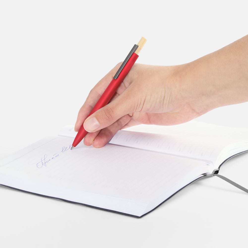Шариковая ручка Bambink в алюминиевом корпусе с матовым покрытием и бамбуковой кнопкой. Строгая форма корпуса и сочетание трех разных материалов делают ручку одновременно лаконичной и нескучной.
