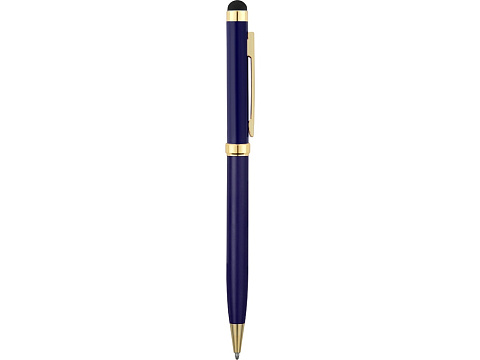 Стильная металлическая ручка со стилусом Голд Сойер – по-настоящему универсальный пишущий инструмент. Ею можно делать записи на бумаге, а перевернув, работать с емкостными экранами с помощью стилуса. Элегантность ручки подчеркивают позолоченные детали: клип, носик и кольцо.