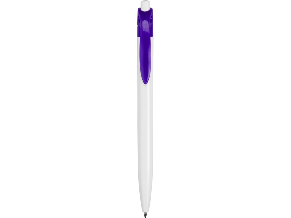 Стильная пластиковая ручка с ярким цветным клипом и белым корпусом отлично подойдет для нанесения логотипов и рекламной информации.