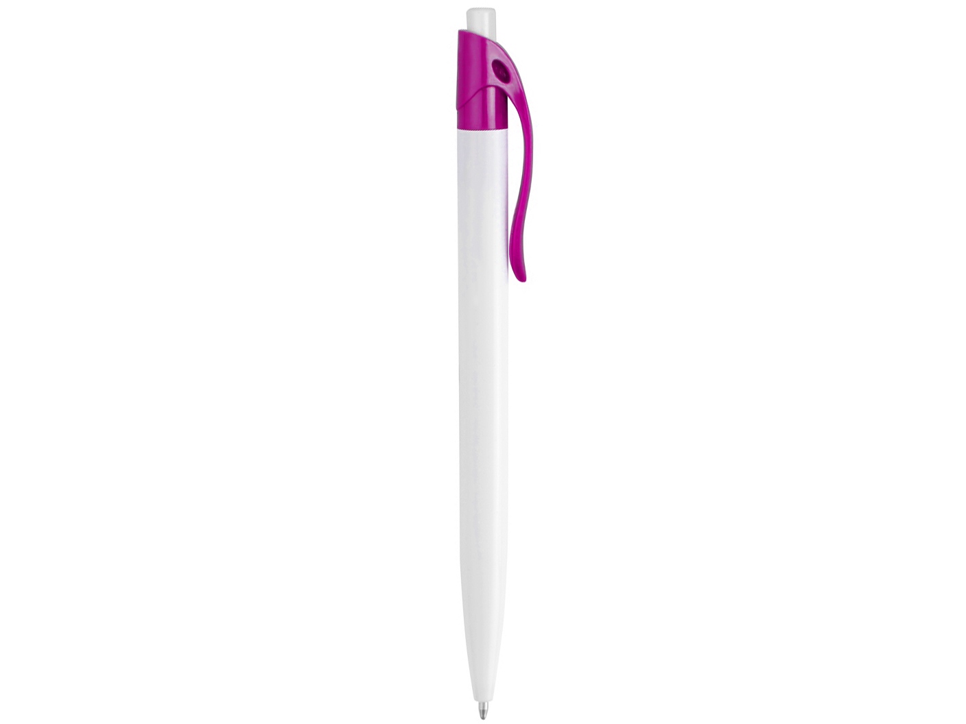 Стильная пластиковая ручка с ярким цветным клипом и белым корпусом отлично подойдет для нанесения логотипов и рекламной информации. Нажимной механизм.