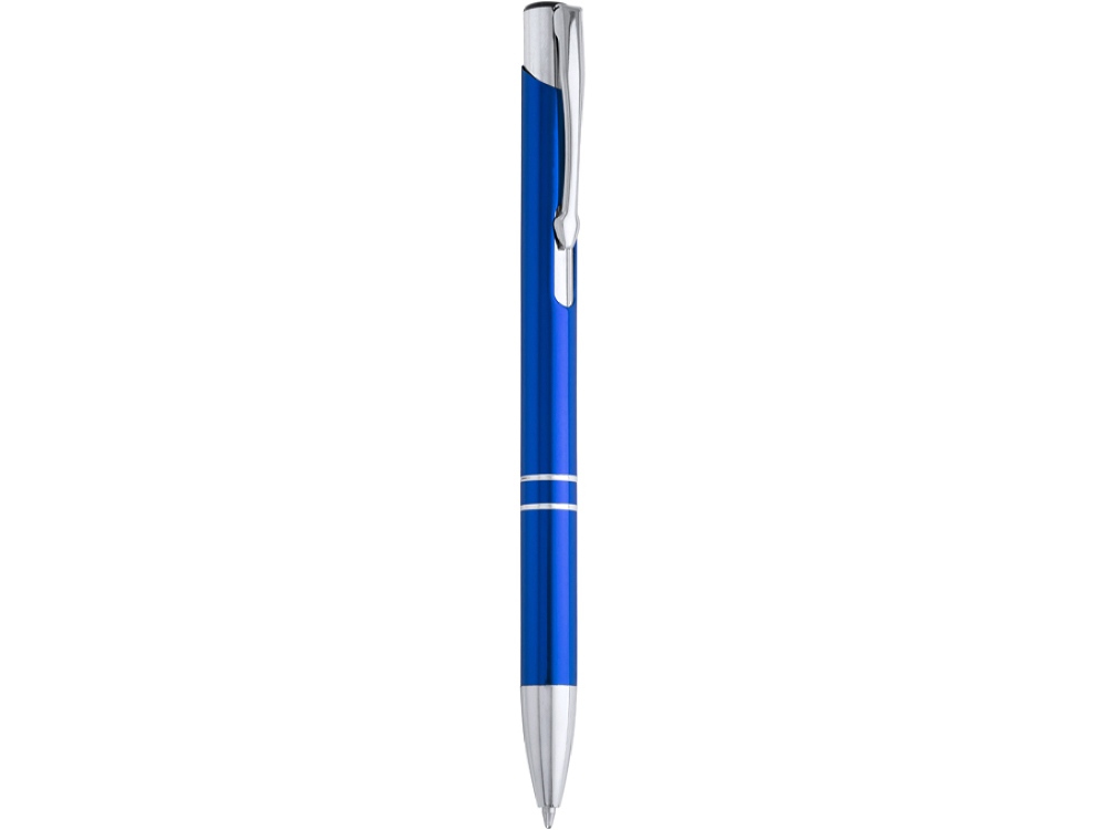 Шариковая ручка с алюминиевым корпусом и кнопкой с анодированным покрытием. Синие чернила