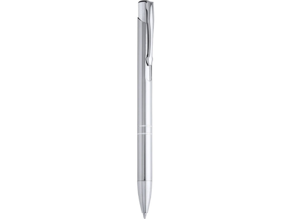 Шариковая ручка с алюминиевым корпусом и кнопкой с анодированным покрытием. Синие чернила