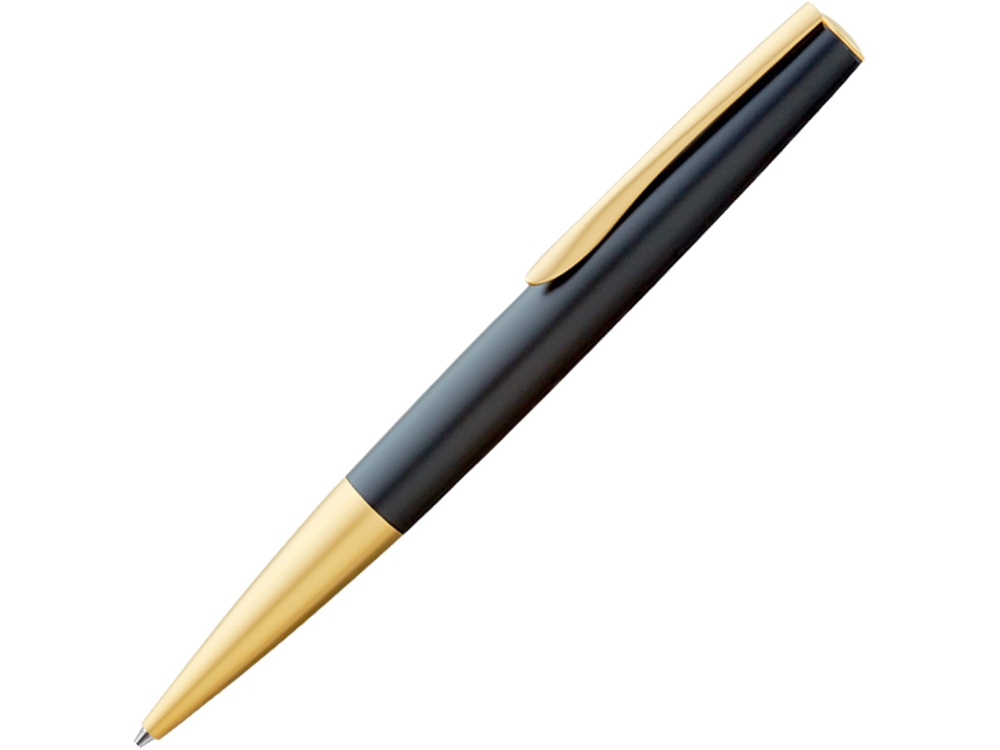 Металлическая шариковая ручка с поворотным механизмом, глянцевым тонированным корпусом в черном, пружинным металлическим клипом и тяжелым металлическим наконечником с позолоченной отделкой. Европейский объемный стержень в металлическом корпусе с наконечником из нержавеющей стали и вольфрамово-карбидным шариком (1,0 мм). Длина письма: примерно 10 000 м. Немецкие чернила соответствует стандарту ISO. Произведено в Германии.