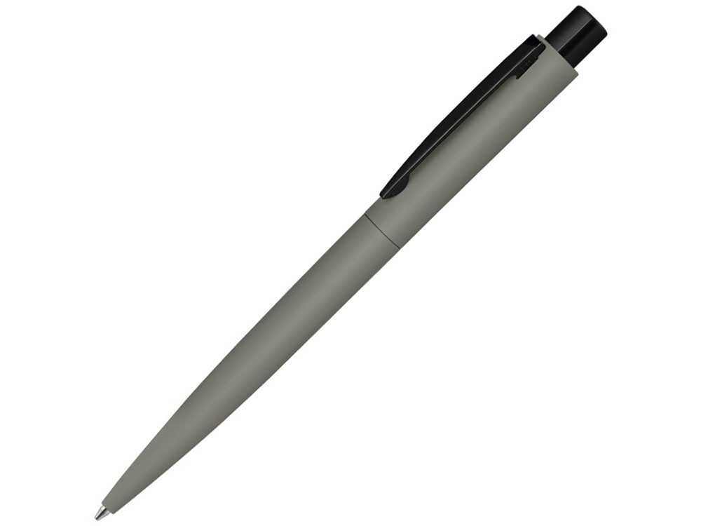 Металлическая шариковая ручка с нажимным механизмом в матовом корпусе soft touch. Металлический клип и кнопка выполнены в черном глянце.