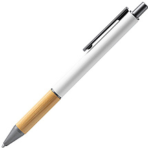 Металлическая шариковая ручка с матовым покрытием, бамбуковой вставкой и деталями темного цвета.